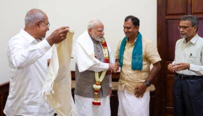 Prime Minister meets group of farmers from Tamil Nadu in Parliament
