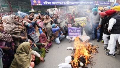 AAP stages protest in Nabha against Centre over scrapping of MGNREGA, burns effigy of PM Modi