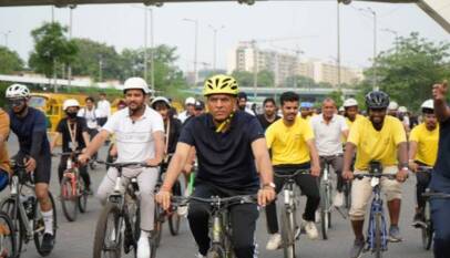 UM Dr. Mansukh Mandaviya leads Fit India Sundays on Cycle in New Delhi in collaboration with Yogasana Bharat