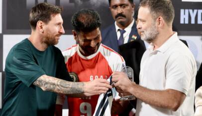 Rahul Gandhi Meets Lionel Messi in Hyderabad, Receives GOATED No. 10 Jersey Amid GOAT Tour Spotlight