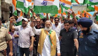 Thousands join Tiranga Yatra in Ambala Cantonment led by Anil Vij
