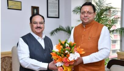 Chief Minister Pushkar Singh Dhami Pays Courtesy Call on Union Health Minister J.P. Nadda in New Delhi