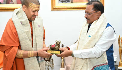 Courtesy Visit by Niranjan Peethadheeshwar Mahamandaleshwar Dr. Swami Kailashanand Giri Ji Maharaj to Chief Minister Vishnu Deo Sai